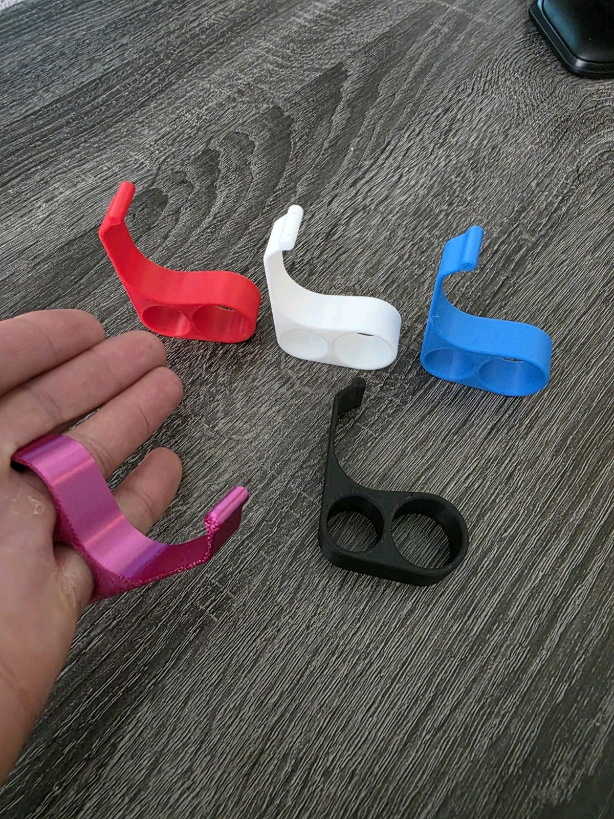 > Description: Keep your hands free and your phone secure with this innovative 3D-printed phone holder. Designed to slide comfortably over your pinky and ring finger, it balances your phone effortlessly—great for scrolling, watching videos, or snapping pics.