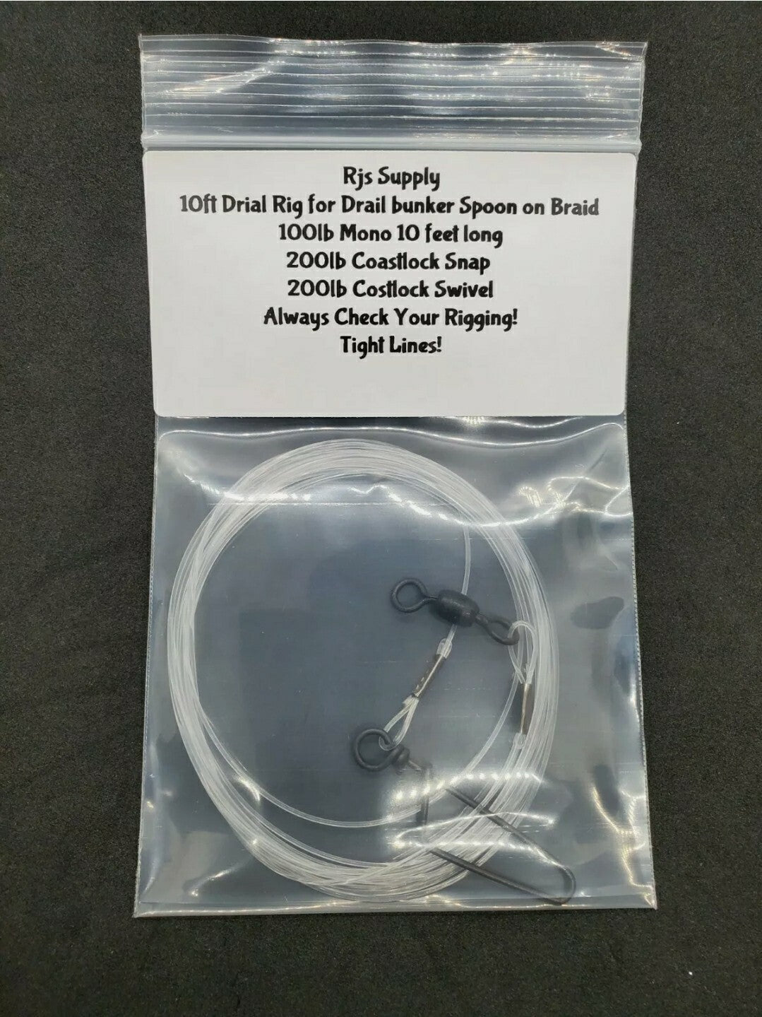 Drail Leader Bunker Spoon 10ft 100lb mono to 200lb barrel swivel to 200lb coast lock
