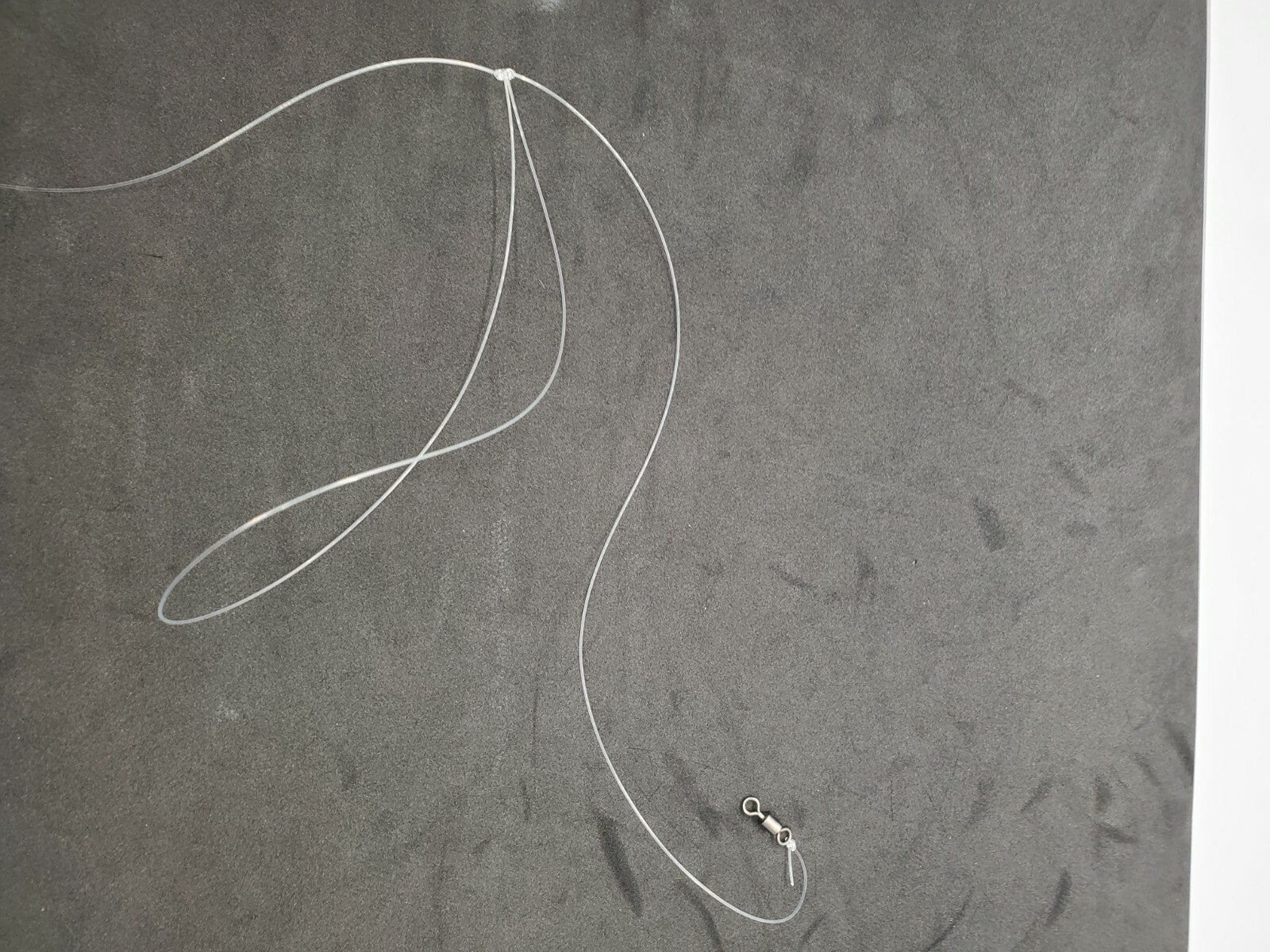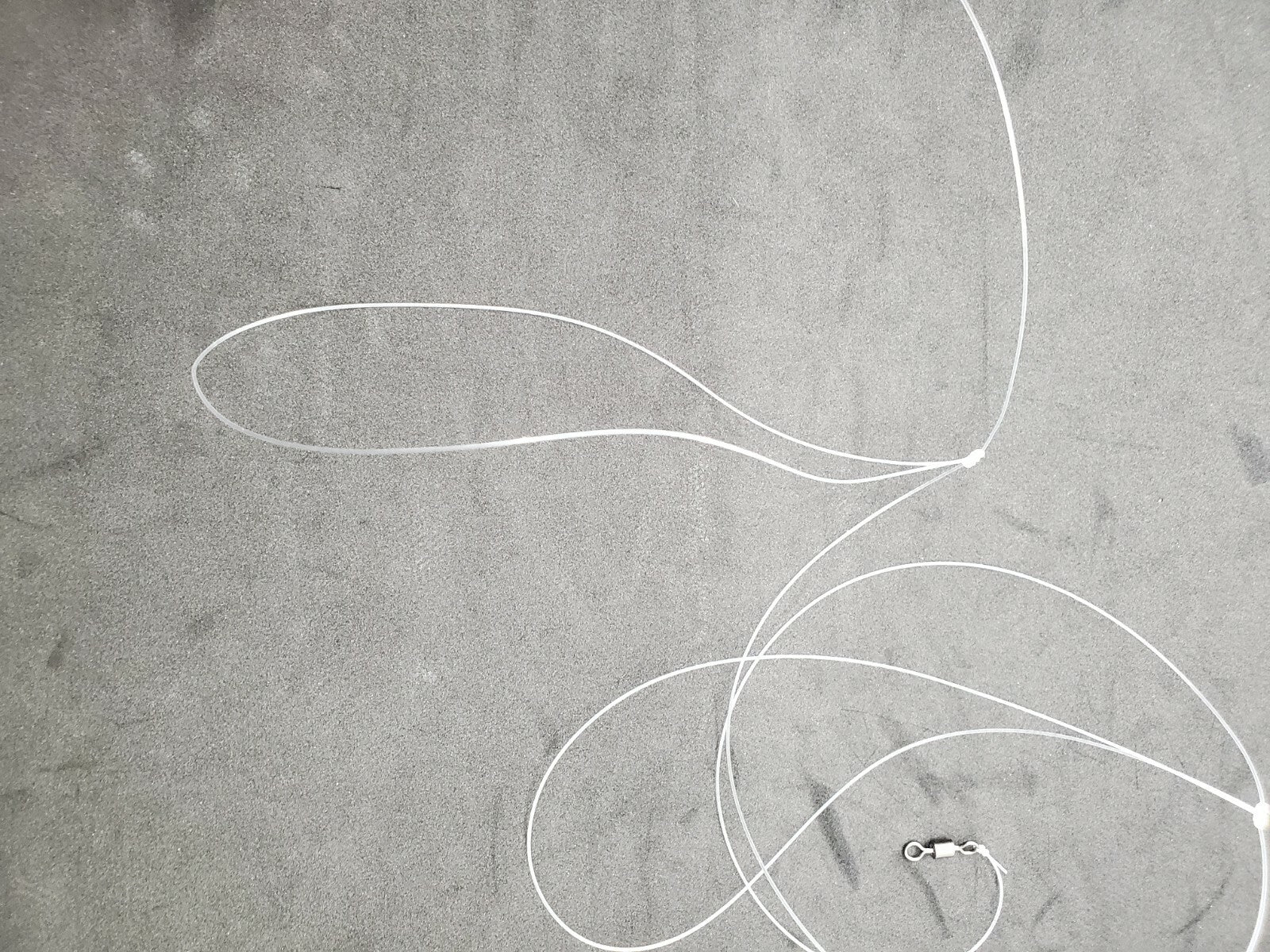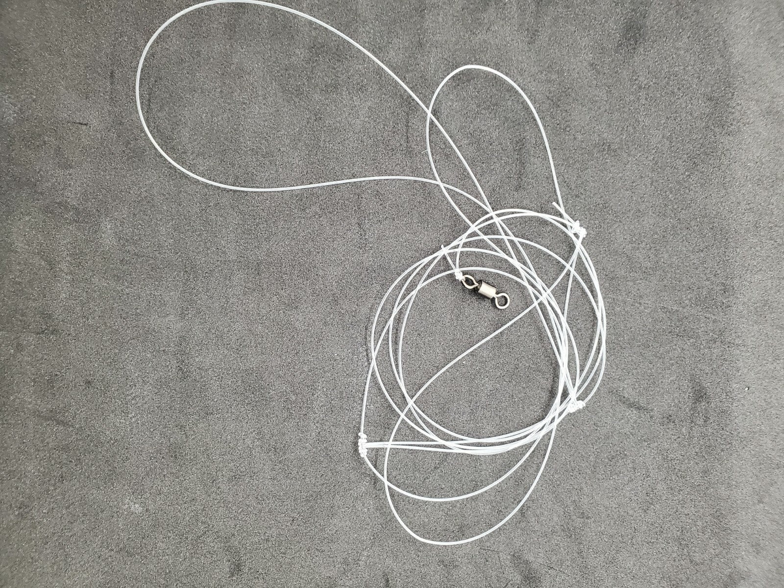Rolling swivel 150lbs tied at top with overall 36 inch length with 5 inch break away clinch knot. With 2 - 4 inch Dropper Loops 12 inches apart.
